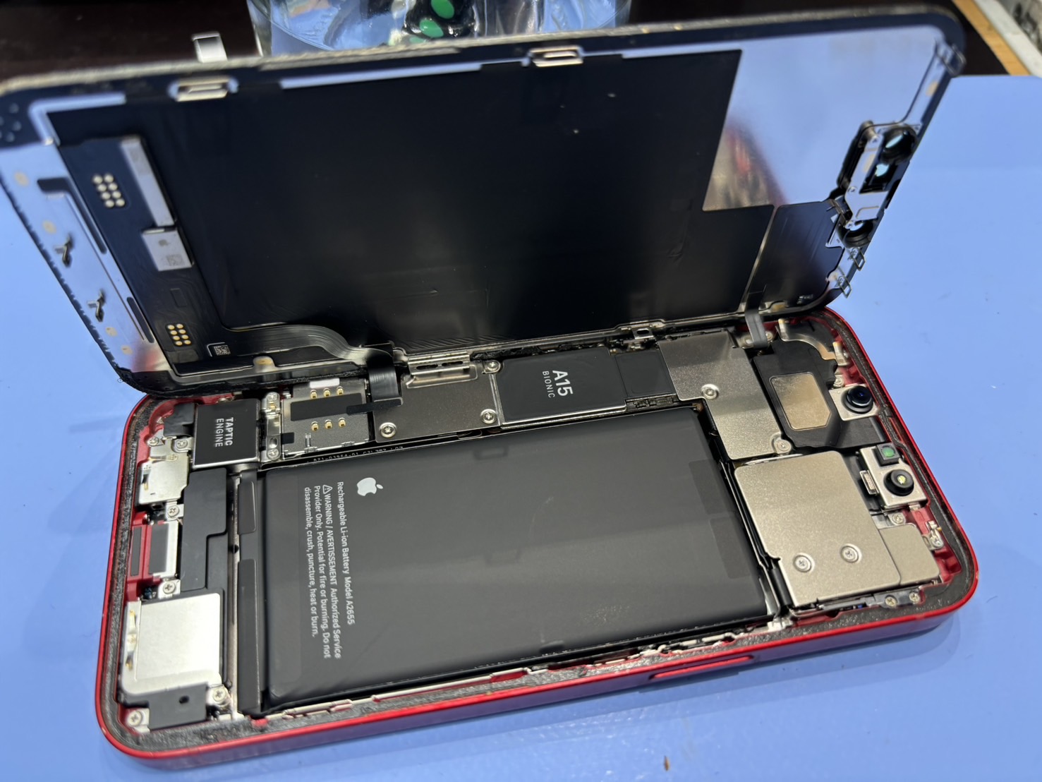 iPhone13のバッテリーは、強力な粘着テープで固定されています。