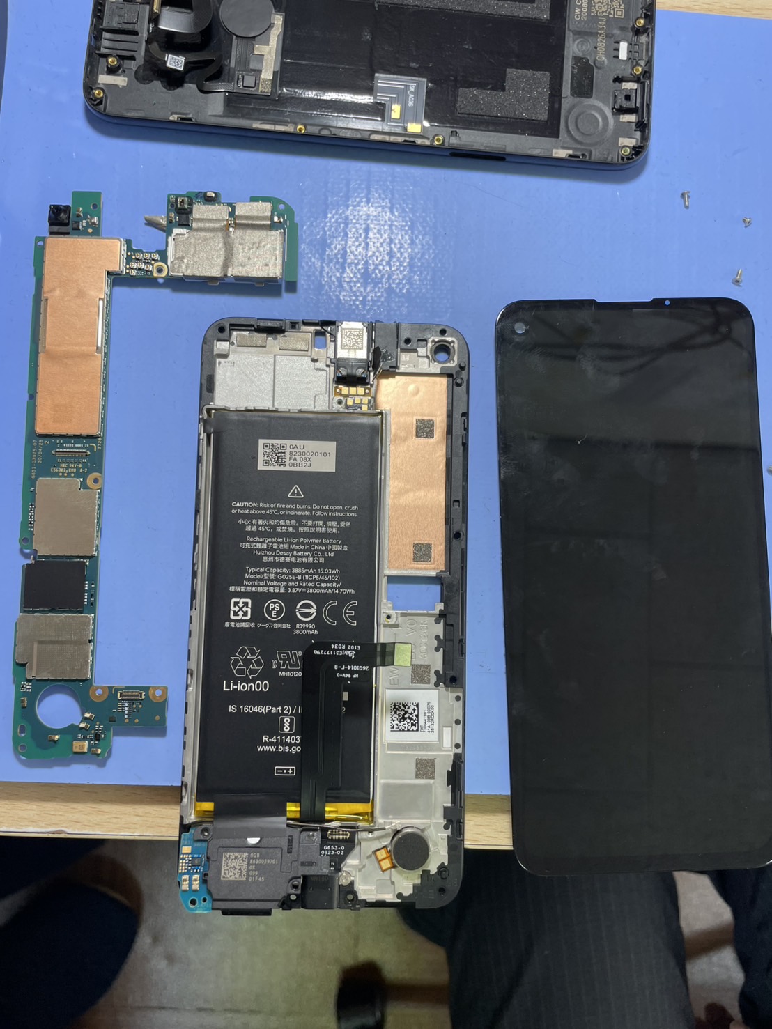 最後に画面、背面共に特殊な糊で貼り付けます。pixelだけに限らず、防水性能のある機種は全て糊や両面テープでくっつけられています。