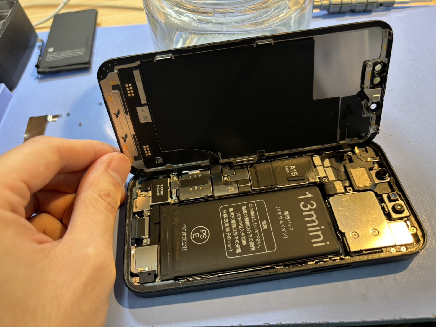 iPhone 13 mini バッテリー交換の修理工程