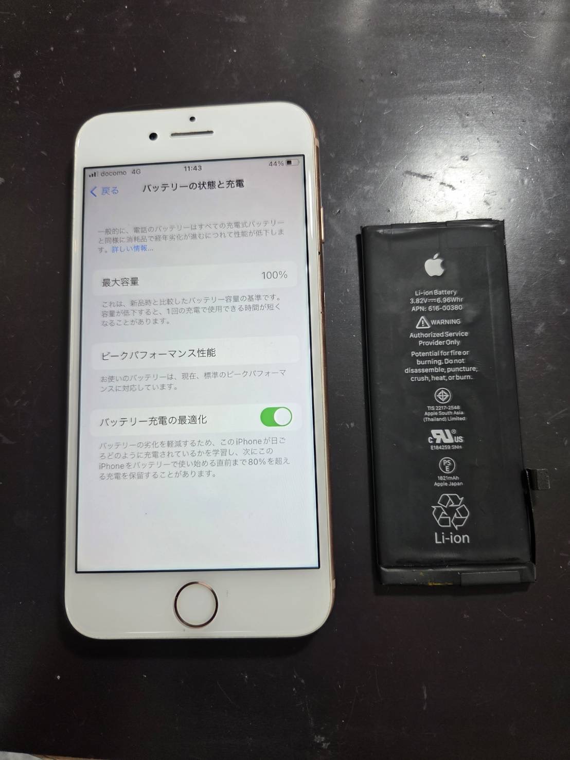 iPhone8 のバッテリー交換は即日対応が可能で、